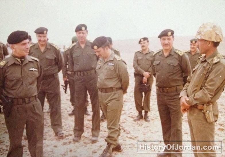 اخذت الصورة في المنطقه الشرقيه حمرا حمد - شرق #الزرقاء بحضرة الملك حسين وعرف منهم العميد الركن عارف العدوان اليمين ..وجانبه حلمي باشا اللوزي والامير زيد بن شاكر