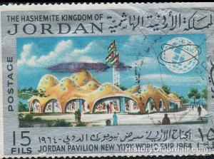طابع رسم عليه الجناح الأردني في معرض نيويورك الدولي - ع